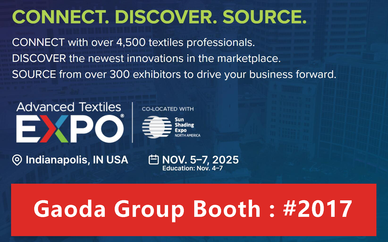 Gaoda Group akan mengambil bahagian dalam pameran AT Expo 2025 yang diadakan di Indianapolis, dari 05 November hingga 07 November. Sebagai pengeluar terkemuka di dunia fabrik industri berprestasi tinggi, Gaoda Group akan menunjukkan pelbagai bahan salutan pisau PVC, bahan mesh, fabrik perindustrian yang melengkung berprestasi tinggi, dan produk kulit asli kitar semula yang mesra alam.